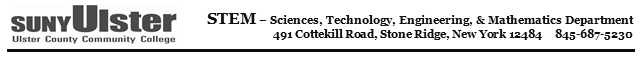 - Instructor name and contact information including office location, SUNY Ulster email, and a phone number. I would recommend adjunct faculty not provide a private telephone number (it's OK if you want to, but be aware it may end up being problematic). The main Department number can be given (845-687-5230) and the department's Administrative Assistant will take a message.